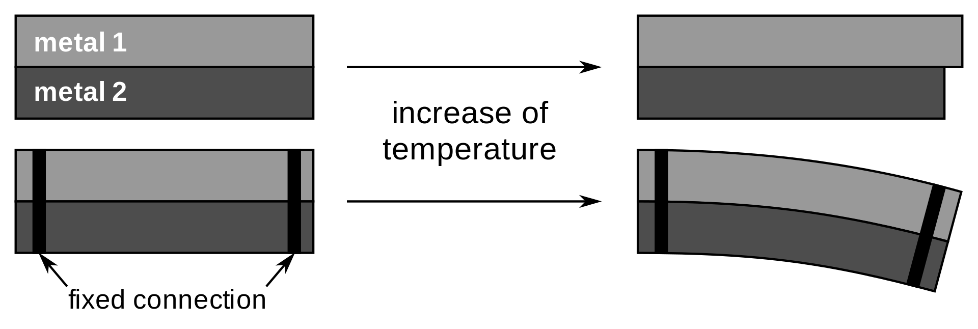 다리미의 온도가 일정 온도 이상으로 높아지게 되면 열팽창률이 큰 금속이 더 많이 팽창하게 되고 (위 그림의 metal 1) 열팽창률이 낮은 금속이 상대적으로 덜 팽창하게 되는데 (metal 2), 이렇게 되면 바이메탈은 열팽창률이 낮은 쪽으로 휘어지게 됩니다. 이렇게 바이메탈이 휘어지게 될 때 바이메탈이 전류를 공급하는 스위치와 떨어지도록 설계를 하는 것이지요.