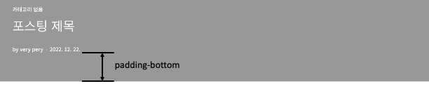 이 코드에서 padding-bottom: 78px 부분을 보겠습니다. padding-bottom은 아래에서부터 작성자명과 날짜가 적혀있는 부분까지의 여백을 의미합니다. 따라서 이 숫자를 조정해주면 글씨 위치를 조정할 수 있습니다.