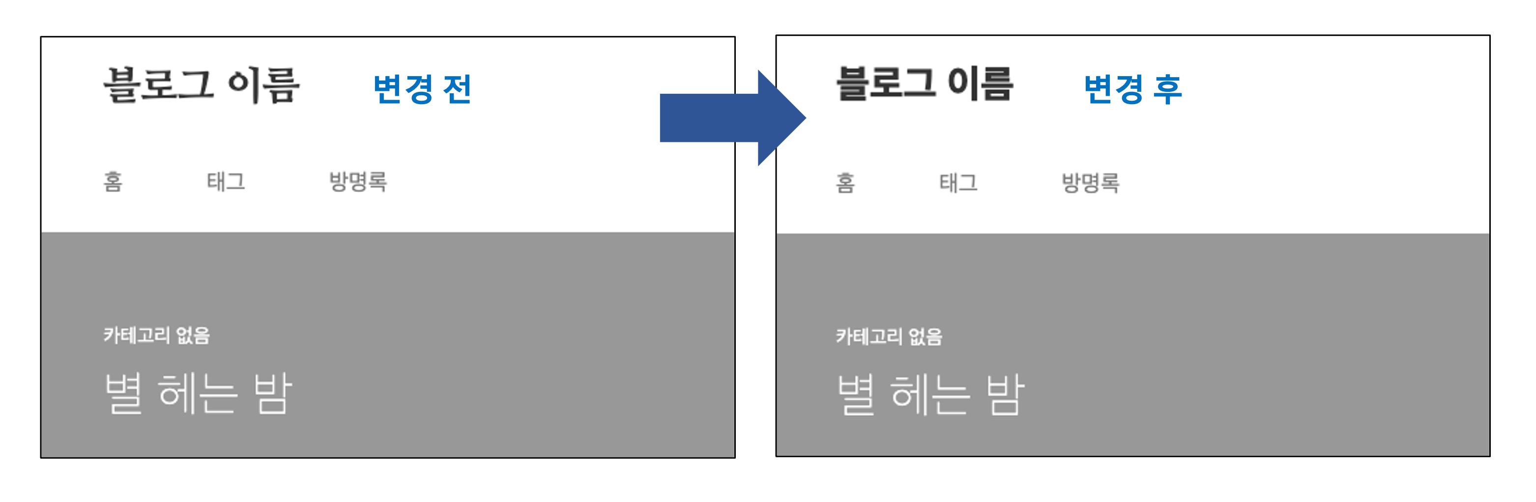 적용 후 확인해보면 블로그 이름 폰트가 변경된 것을 확인할 수 있습니다.